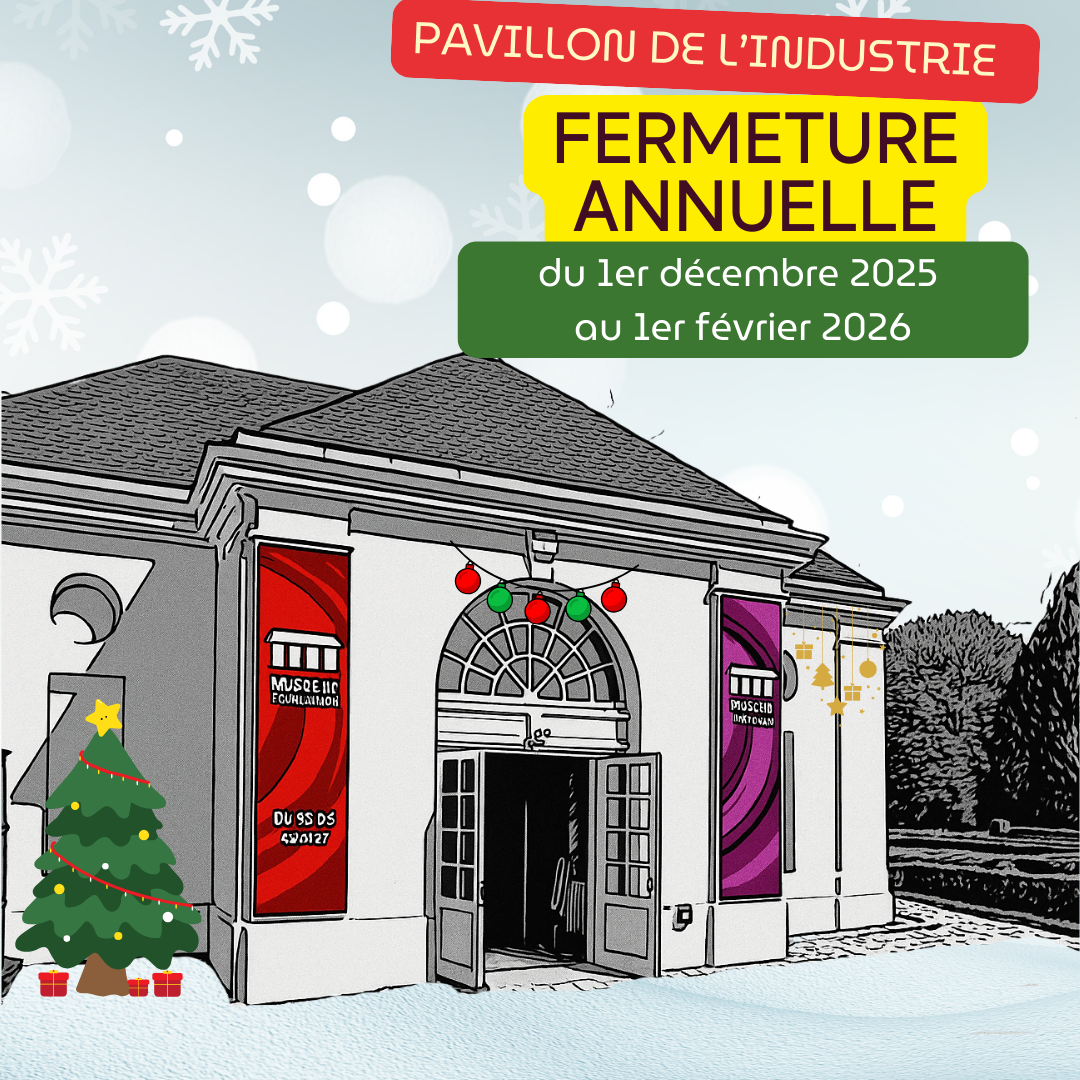 Fermeture annuelle du Pavillon de l'Industrie du 1er décembre 2025 au 1er février 2026. Réouverture le lundi 2 février 2026.